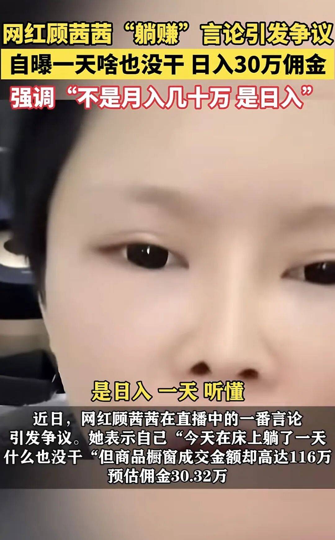 雷同的案例并不鲜见,此前还有多量炫富网红被。客岁2月,网红顾茜茜正在面临网友的讥讽时,间接掏出手机晒出曲播收入,仅一周成交额便超1000万,预估佣金近280万。这还不敷,成交金额也高达800多万。同时,顾茜茜还说出了一番“凡尔赛”的言论,暗示“什么都不干,橱窗也能月入百万”。