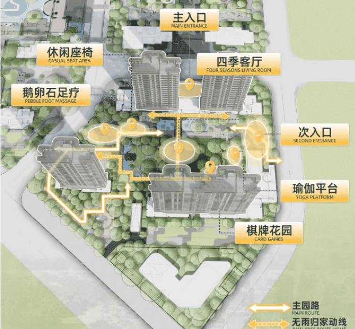 “三园”则是指分布正在小区分歧的三个从题花圃:米勒花圃、岛屿水院和全龄乐土。米勒花圃以欧式气概为从,设有雕塑、喷泉、座椅等景不雅小品,营制出浪漫文雅的空气,是业从约会、聊天的抱负场合。岛屿水院则以水景为从题,人工湖、溪流、瀑布等元素巧妙连系,水声潺潺,清冷末路人,为炎夏带来一丝风凉。全龄乐土专为儿童设想,设有滑梯、秋千、沙池、攀爬架等多种逛乐设备,满脚分歧春秋段孩子的玩耍需求,是孩子们的欢喜六合。